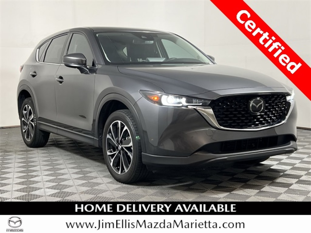 Certified. Machine Gray Metallic 2023 Mazda CX-5 2.5 S Premium Package AWD 6-Speed Automatic SKYACTIV® 2.5L 4-Cylinder DOHC 16V Mazda Certified Pre-Owned Certified.