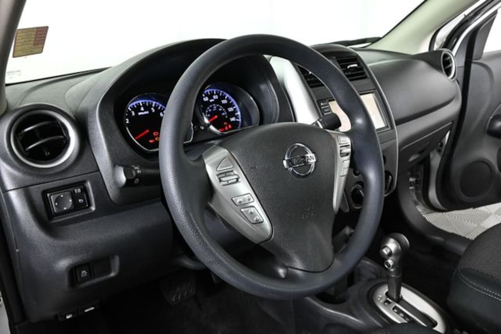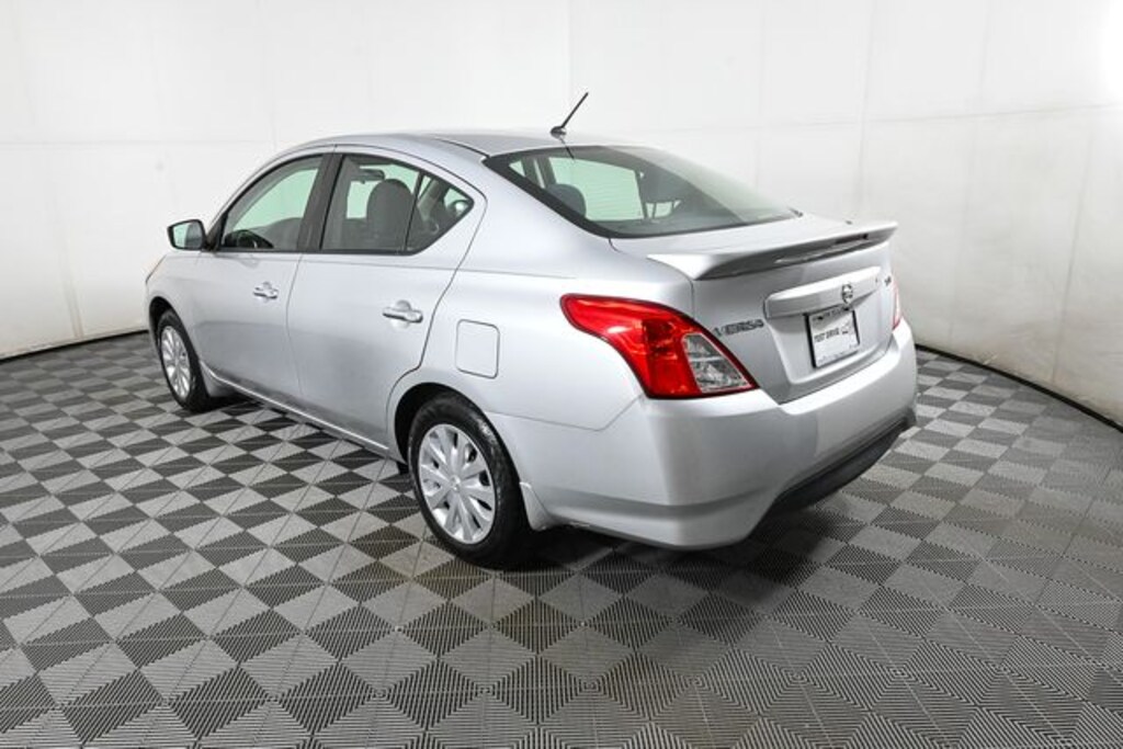 This 2019 Nissan Versa is equipped with 1.6L 4-Cylinder DOHC 16V, CVT with Xtronic, Brilliant Silver Metallic, Charcoal w/Cloth Seat Trim, 4 Speakers, ABS brakes, Adjustable Front Bucket Seats, Air Conditioning, AM/FM radio, Brake assist, Bumpers: body-color, Carpeted Floor & Trunk Mat Set (5-Piece), Driver door bin, Driver vanity mirror, Dual front impact airbags, Dual front side impact airbags, Electronic Stability Control, Front anti-roll bar, Front Bucket Seats, Front reading lights, Front wheel independent suspension, Illuminated entry, Low tire pressure warning, Occupant sensing airbag, Outside temperature display, Overhead airbag, Panic alarm, Passenger door bin, Passenger vanity mirror, Power door mirrors, Power steering, Power windows, Radio data system, Radio: AM/FM Audio System, Rear anti-roll bar, Rear window defroster, Remote keyless entry, Speed control, Speed-sensing steering, Splash Guards, Split folding rear seat, Spoiler, Steering wheel mounted audio controls, Streaming Audio Via Bluetooth, Tachometer, Tilt steering wheel, Traction control, Trip computer, Upgraded Cloth Seat Trim, Variably intermittent wipers, and Wheels: 15" x 5.5 JJ Steel w/Full Covers.