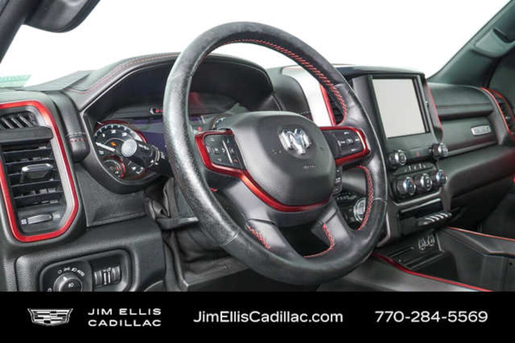REBEL LEVEL 2 EQUIPMENT GROUP Google Android Auto®, Radio: Uconnect 4 w/8.4 Display, Rear Window Defroster, Rain Sensitive Windshield Wipers, Integrated Center Stack Radio, ParkSense Front/Rear Park Assist w/Stop, Rear View Auto Dim Mirror, Power Adjustable Pedals, Rear Dome w/On/Off Switch Lamp, 115V Auxiliary Rear Power Outlet, Auto Dim Exterior Driver Mirror, 2 USB Full Function/Charge Only Media Hub, Rear Underseat Compartment Storage, Heated Front Seats, Heated Steering Wheel, 8.4 Touchscreen Display, Foam Bottle Insert (Door Trim Panel), Security Alarm, Power Heated Fold Away Mirrors, Apple CarPlay®, Remote Start System, Exterior Mirrors w/Supplemental Signals, Exterior Mirrors Courtesy Lamps, Air Conditioning ATC w/Dual Zone Control, Remote Proximity Keyless Entry, Universal, DUAL-PANE PANORAMIC SUNROOF Premium Overhead Console, Dome Dual LED Reading Lamp, Overhead LED Lamps, ENGINE: 5.7L V8 HEMI MDS VVT Active Noise Control System, Heavy Duty Engine Cooling, Dual Exhaust w/Black Tips, GVWR: 7,100 lbs, Hemi Badge, 220 Amp Alternator, 9 AMPLIFIED SPEAKERS W/SUBWOOFER, BLIND SPOT & CROSS PATH DETECTION, SPRAY IN BEDLINER, TRANSMISSION: 8-SPEED AUTOMATIC (8HP75).