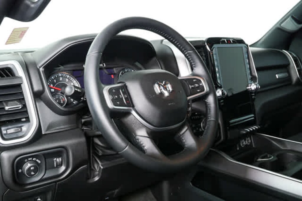 BIG HORN LEVEL B EQUIPMENT GROUP SiriusXM Radio Service, Rear Window Defroster, ParkSense Front/Rear Park Assist w/Stop, Rear View Auto Dim Mirror, Power Adjustable Pedals, Rear Power Sliding Window, Rear Dome w/On/Off Switch Lamp, Front Fog Lamps, Glove Box Lamp, Media Hub w/2 Charge Only USBs, Power 8-Way Driver Seat, Auto Dim Exterior Driver Mirror, Heated Front Seats, Heated Steering Wheel, Class IV Receiver Hitch, Security Alarm, Black Premium Power Mirrors, Big Horn IP Badge, Remote Start System, SiriusXM Satellite Radio, 400W Inverter, 9 Amplified Speakers w/Subwoofer, Radio: Uconnect 5 Nav w/12.0 Display, Google Android Auto®, USB Host Flip, Disassociated Touchscreen Display, HD Radio, Integrated Center Stack Radio, For More Info, Call 800-643-2112, Connectivity - US/Canada, 12, ENGINE: 5.7L V8 HEMI MDS VVT ETORQUE Active Noise Control System, Heavy Duty Engine Cooling, Passive Tuned Mass Damper, Dual Rear Exhaust w/Bright Tips, HEMI Badge, 23 Gallon Fuel Tank, 18 Aluminum Spare Wheel, NIGHT EDITION Tires: 275/55R20 OWL All Season, Bridgestone Brand Tires, Accent Color Premium Power Mirrors, Exterior Mirrors w/Supplemental Signals, Black Headlamp Bezels, Exterior Mirrors Courtesy Lamps, Auto Dim Exterior Driver Mirror, Black Exterior Truck Badging, Anti-Spin Differential Rear Axle, Wheels: 20 x 9.0 Premium Paint/Polished, Accent Color Door Handles, Black Interior Accents, Dual Exhaust w/Black Tips, Power-Folding Mirrors, Body Color Front Bumper, Body Color Rear Bumper w/Step Pads, RAM Grille Badge - Black, Black Painted Exterior Mirrors Caps, TRANSMISSION: 8-SPEED AUTOMATIC (8HP75), BLACK, DELUXE CLOTH BUCKET SEATS Power 8-Way Driver Seat, Center Console Parts Module, Bucket Seats, Manual Adjust 4-Way Front Passenger Seat, Full Length Floor Console, Rear Center Armrest, Power 2-Way Driver Lumbar Adjust.