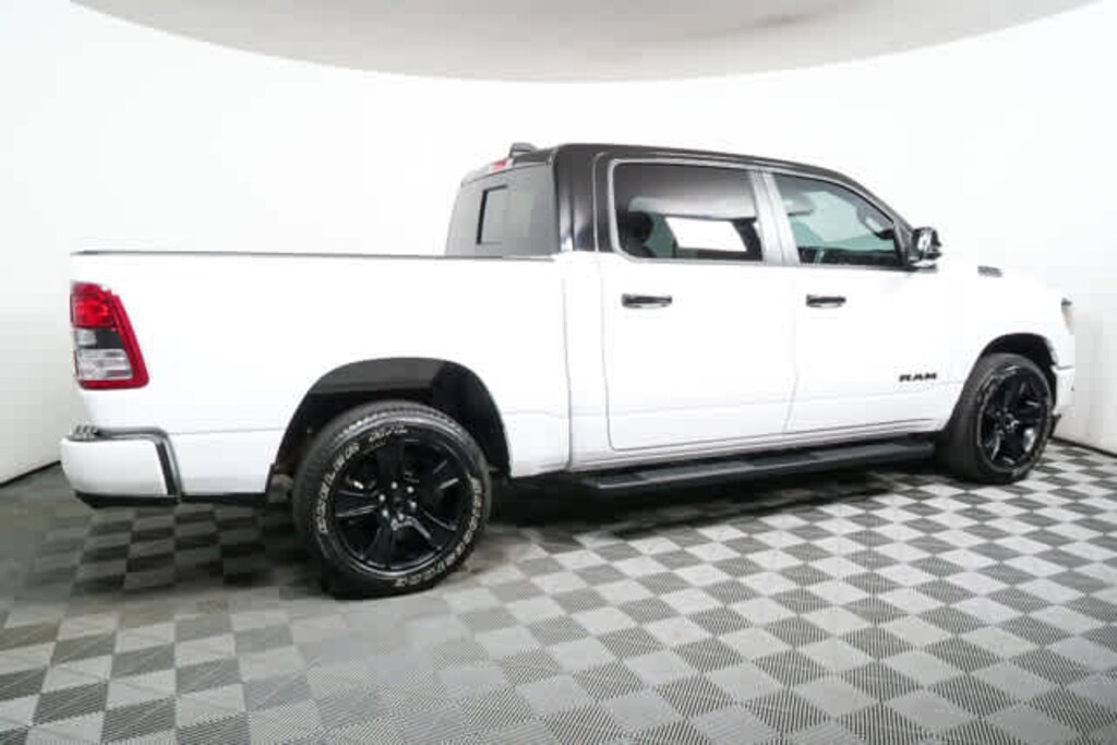 Electronic Stability Control, Adjustable Pedals, Brake Assist, 4-Wheel ABS, 4-Wheel Disc Brakes, Tire Pressure Monitoring System Ram Big Horn with Bright White Clearcoat exterior and Black interior features a 8 Cylinder Engine with 395 HP at 5600 RPM*.