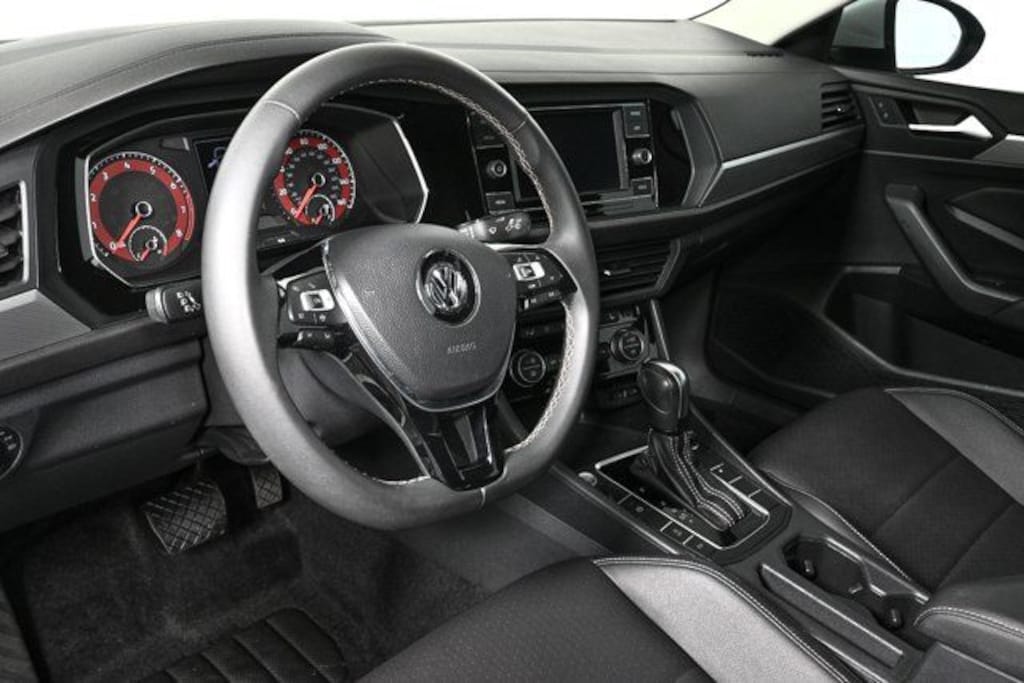 This 2021 Volkswagen Jetta is equipped with Jetta 1.4T SE, 1.4L TSI, Pure White, Titan Black w/Perforated V-Tex Leatherette Seat Trim, 4 Speakers, 4-Wheel Disc Brakes, ABS brakes, Air Conditioning, Alloy wheels, AM/FM radio, Brake assist, Bumpers: body-color, Delay-off headlights, Driver door bin, Driver vanity mirror, Dual front impact airbags, Dual front side impact airbags, Electronic Stability Control, Emergency communication system: VW Car-Net services (capabilities require enrollment or subscription), Exterior Parking Camera Rear, Front anti-roll bar, Front Bucket Seats, Front Center Armrest, Front wheel independent suspension, Fully automatic headlights, Illuminated entry, Low tire pressure warning, Occupant sensing airbag, Outside temperature display, Overhead airbag, Overhead console, Panic alarm, Passenger door bin, Passenger vanity mirror, Power door mirrors, Power steering, Power windows, Radio data system, Radio: Composition Color w/6.5" Touchscreen, Rear anti-roll bar, Rear reading lights, Rear window defroster, Remote keyless entry, Speed control, Speed-sensing steering, Split folding rear seat, Steering wheel mounted audio controls, Tachometer, Telescoping steering wheel, Tilt steering wheel, Traction control, Trip computer, and Variably intermittent wipers.